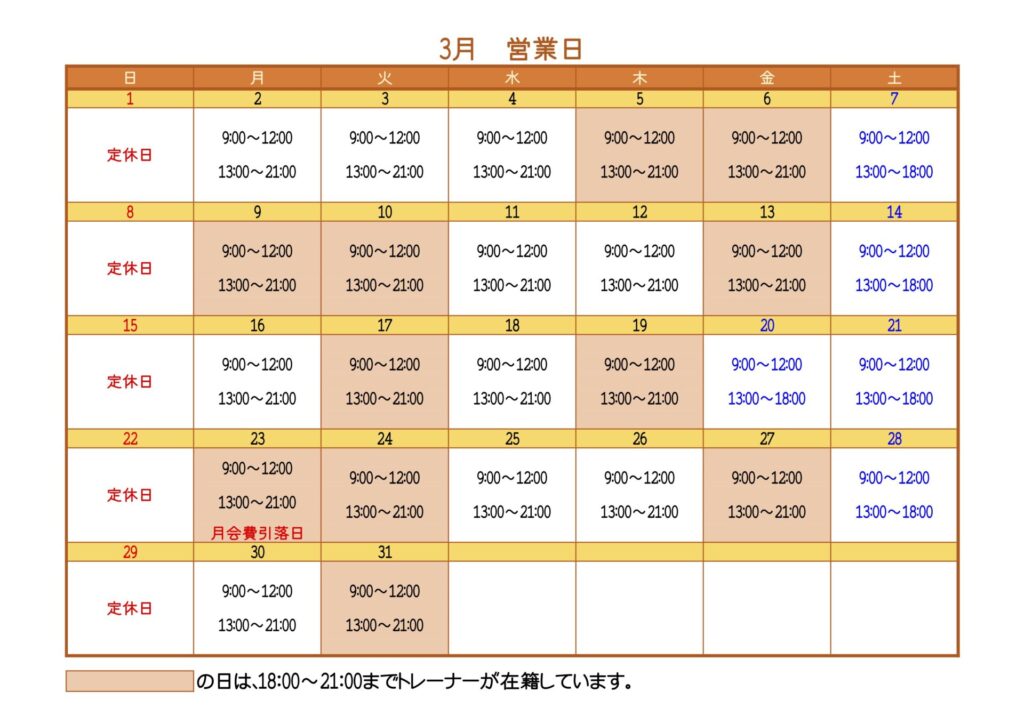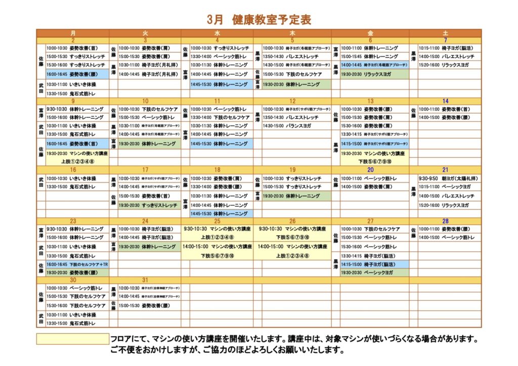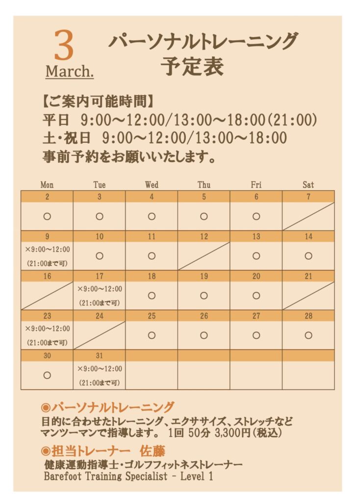 3月のスケジュール